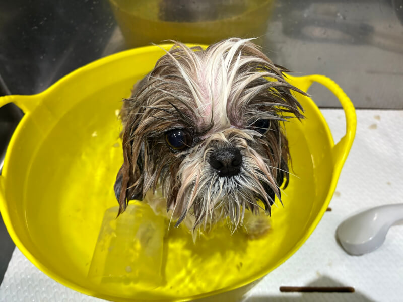 シャンプー初来店のリオくん