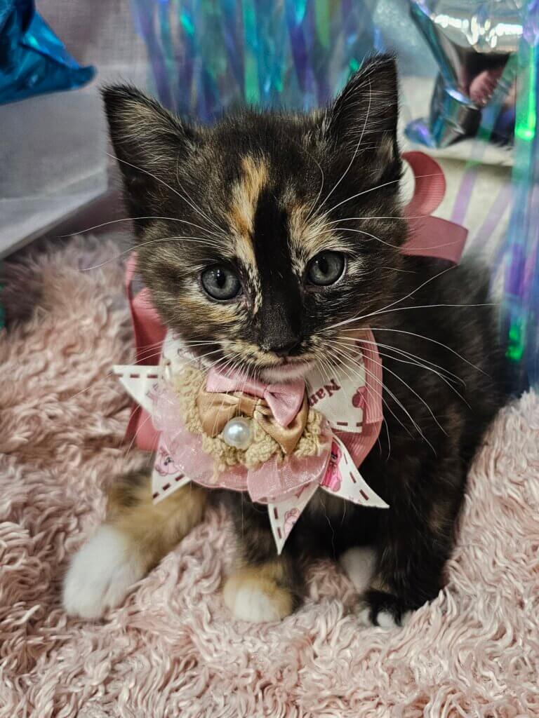 鮮やかなサビ猫の妹分、女の子の「たまみちゃん」🩷